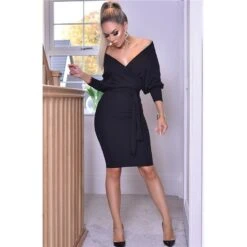 - Elegantes Kleid in Wickel-Optik aus festem Stretchstoff